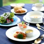 ランチコースメニューにはすべて2種類のパン、サラダオードブル、デザート、珈琲または紅茶が付きます。